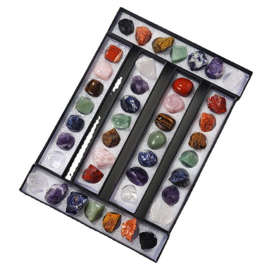 Flag Village Natural Raw Stone Ore Seven Color Gem Gift Box Set